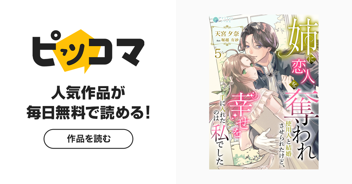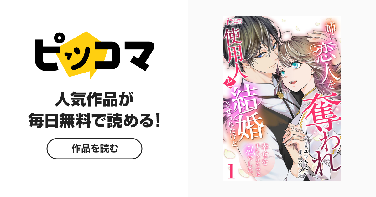 姉に恋人を奪われ使用人と結婚させられたけど、幸せを手に入れたのは私でした|無料漫画(まんが)ならピッコマ|天宮夕奈 堀越有紗伯爵令嬢のエディーナは5歳のころから、足が悪い姉ミレイユの世話をするだけの日々を過ごしてきた。両親は花のように可愛らしいミレイユを溺愛し、地味で平凡なエディーナのことは、まるで使用人のように扱った。そんな生活を強いられていたエディーナだが、...
